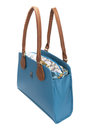 Cuerpo piel, palo de rosa, asas piel berenjena, funda dril pepas.