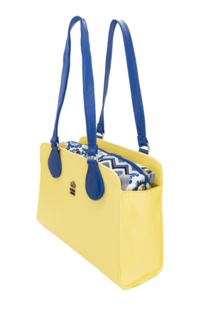 Cuerpo piel, palo de rosa, asas piel berenjena, funda dril pepas.